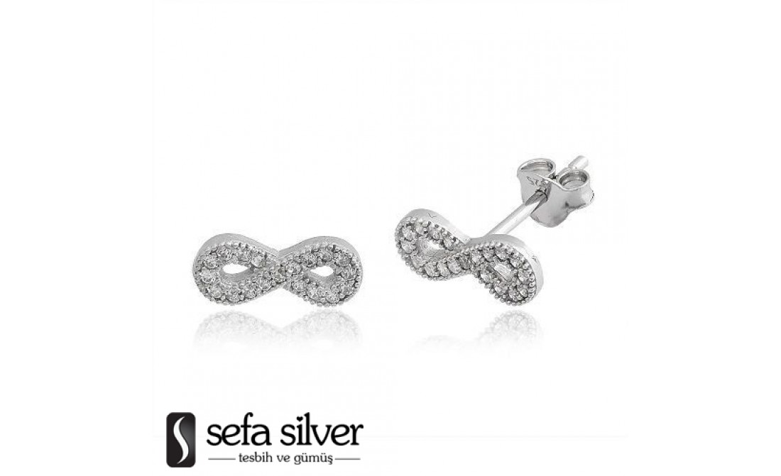 Modelde üzeri özel zirkon taşlarla süslenmiş ve sonsuzluk gibi anlamlı bir motif işlenerek tasarlanmış küpemizi görmektesiniz.
