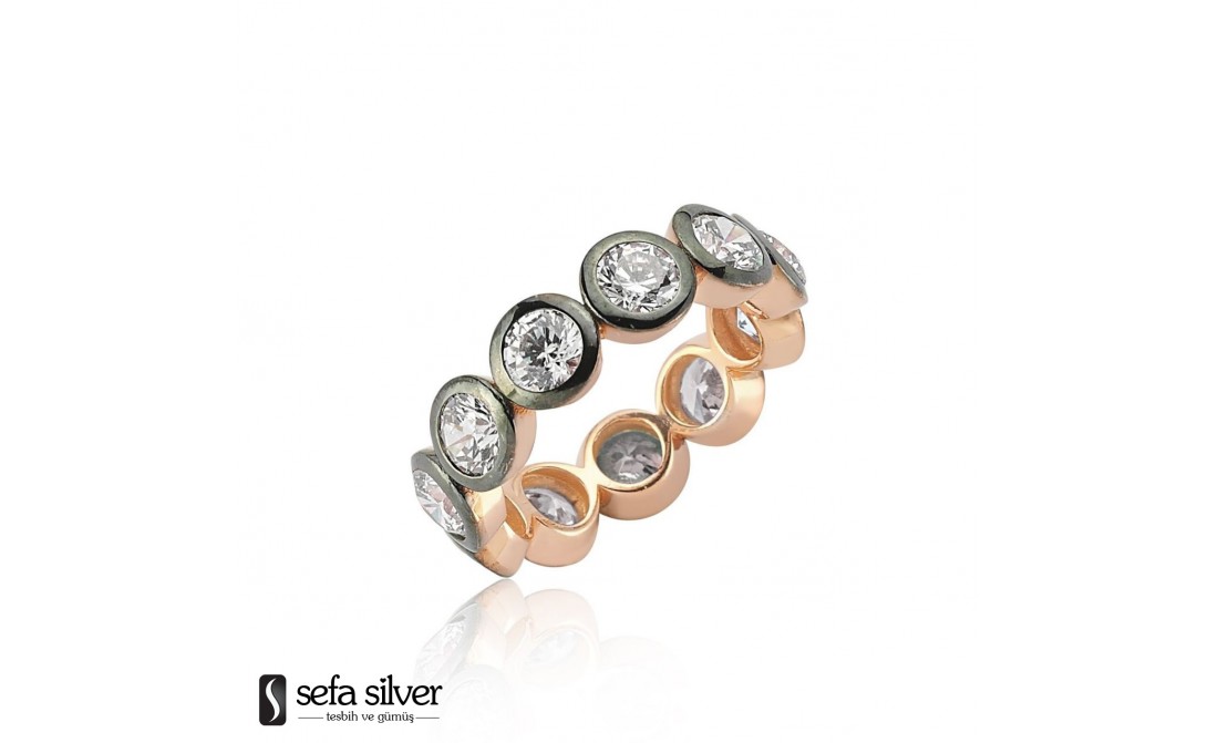 halka oluşturmasıyla ortaya çıkan elmas montörlü tam tur yüzük Sefa Silver