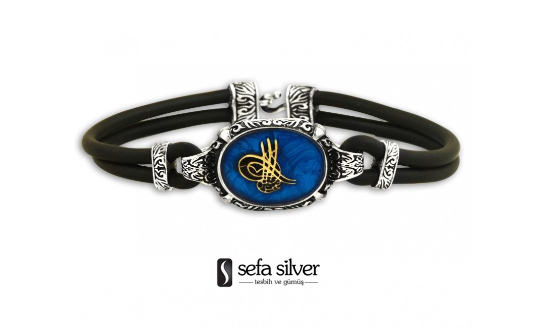 Mavi minenin üzerine işlenen Osmanlı tuğrası motifli olan bu bileklik sadece 190 TL'dir.
