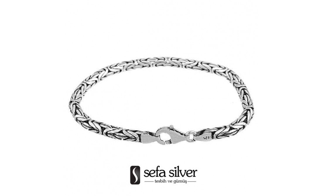 Görmüş olduğunuz erkek bilekliğimiz 925 ayar gümüştür. Kral bilekliğimiz bileğinizde oldukça şık duracaktır.
