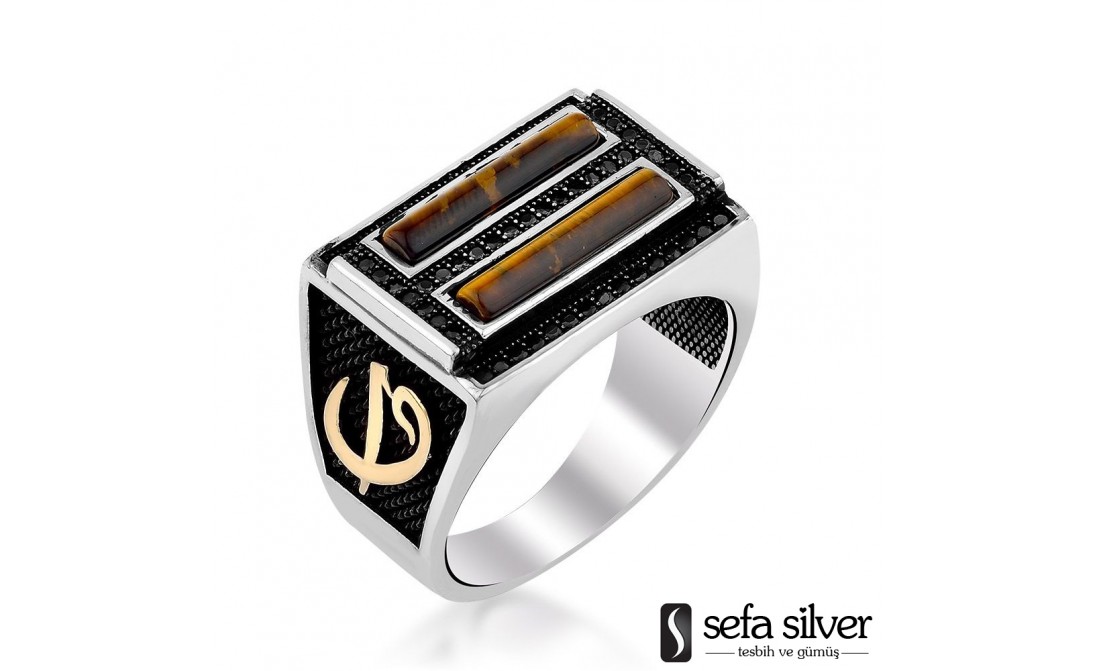Üzerindeki süsleme kaplan gözü dediğimiz doğal taşlardan bir tanesidir. Aynı zamanda yüzüğün kenarlarında Elif ve Vav harfleri kullanılarak yüzüğe estetiğinin yanında manevi bir anlamda katılmış olmaktadır.