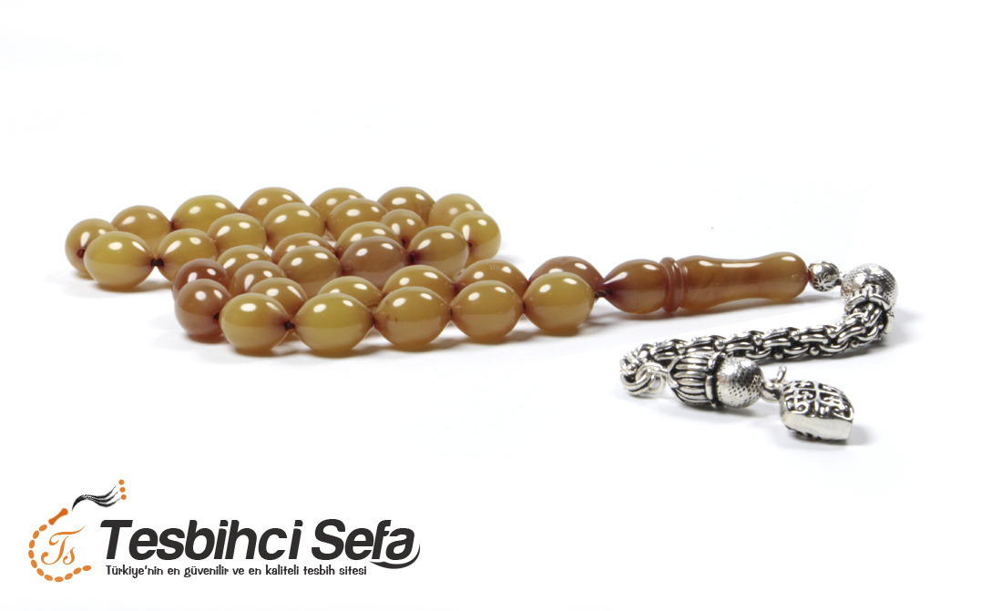 Sefa Silver firmamız tarafından tasarlanan bu model eski osmanlı tesbihler formunda hazırlanmıştır.Tesbih hareli yanı damarlı kehribar türüdür.Tesbih çekildikçe renk değişim özelliğine sahipdir.
