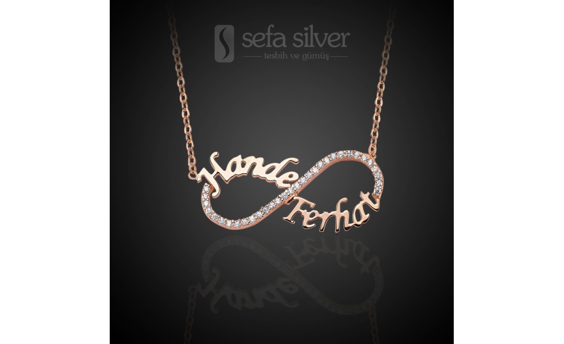 Zirkon Taşlı İsimli Rose Sonsuzluk Kolye