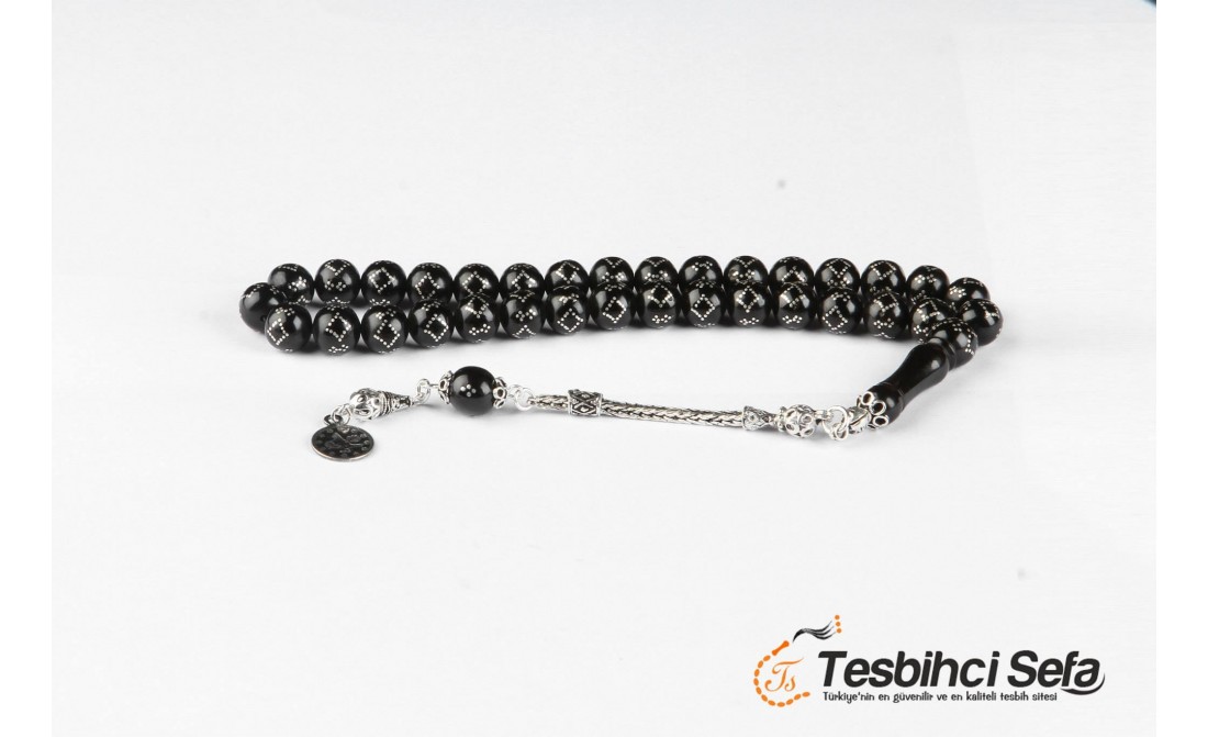 • Erzurum Menşei Gümüş İşlemeli Hakiki Oltu Taşı Tesbih - 2